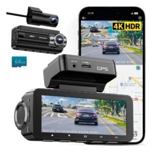 - 4K front + 1080p rear for clear coverage.