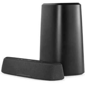 - Compact yet powerful — full, rich audio from a small form‑factor soundbar + wireless subwoofer